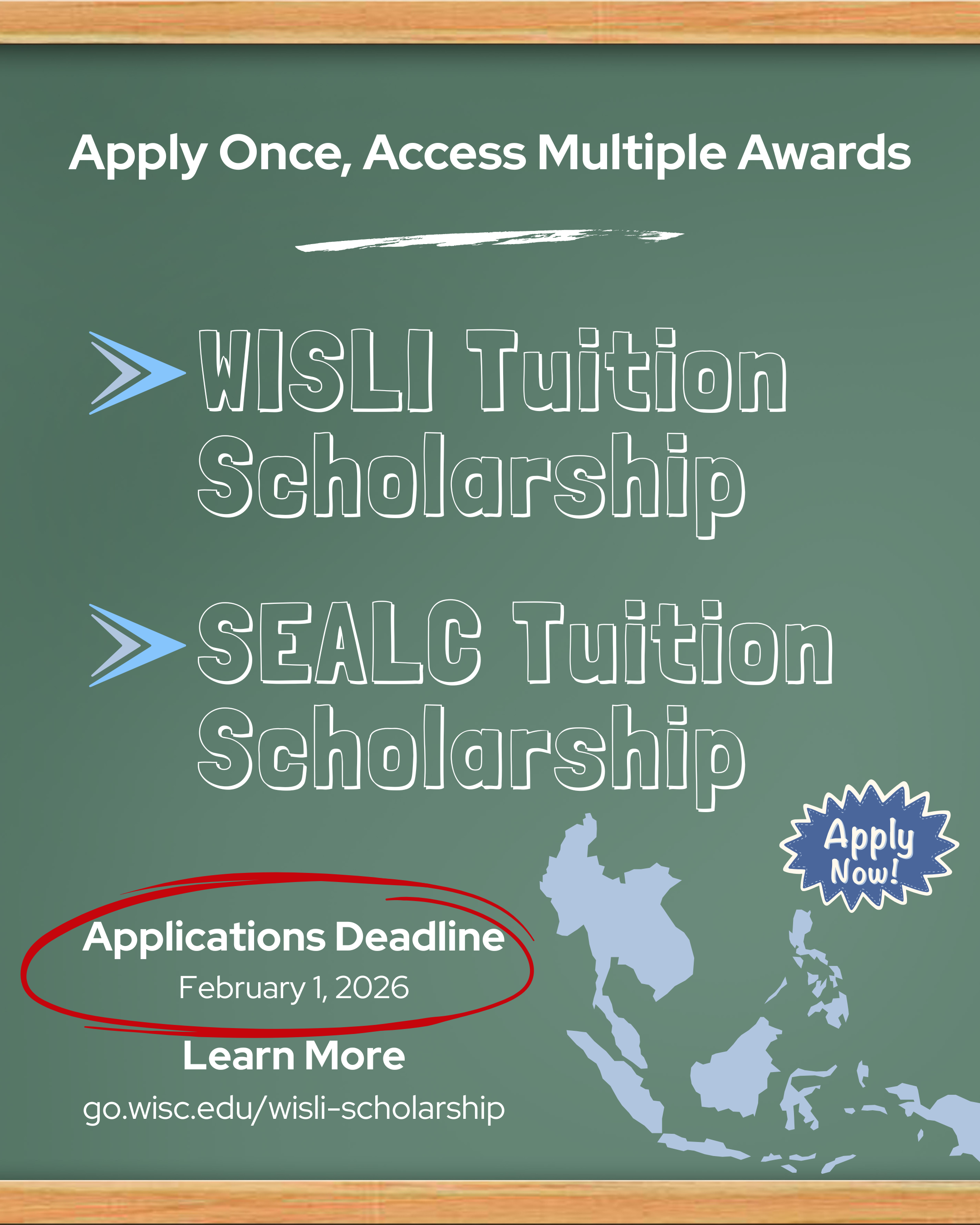 A limited number of FLAS awards are available for summer 2026 through UW-Madison. FLAS covers $5,000 of WISLI tuition and includes a living stipend. Learn more and apply.