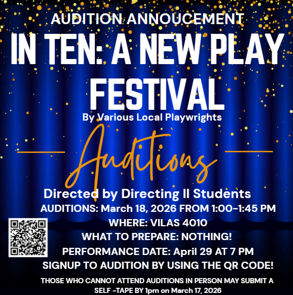Have an announcement to share? Send to publicity@theatre.wisc.edu. Submissions received by Friday will be considered for inclusion in the following week's newsletter.